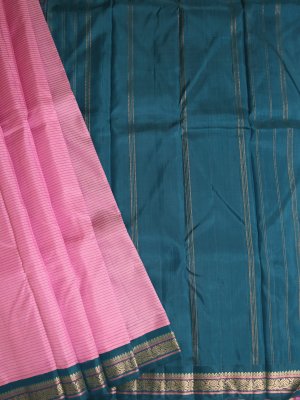 Pink Striped Kanjeevaram Pattu Pettu Silk Saree