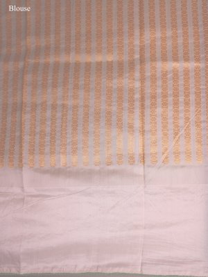 Pista Green Banaras Organza Saree With Off White Silk Border
