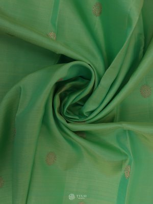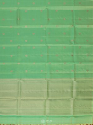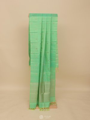 This Pista Green Kanjeevaram Silk Dupatta radiates timeless charm with its lustrous sheen and fine weave. Adorned with delicate zari motifs across the body, it is framed by rich gold zari borders that enhance its regal appeal. The soft texture and graceful drape make it a perfect pairing for traditional ensembles, adding a touch of sophistication and classic elegance.