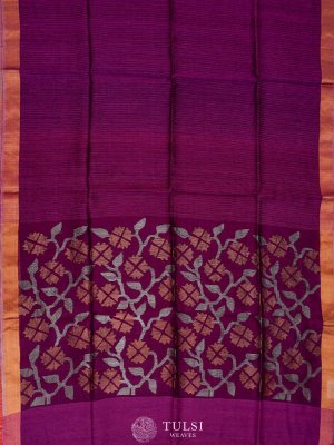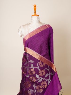 A purple bailou tussar saree is a stunning and elegant option! enhance various skin tones and can be dressed up or down for different occasions. The unique texture of Tussar silk adds a touch of sophistication, making it ideal for festive events or even weddings.