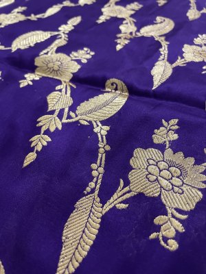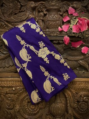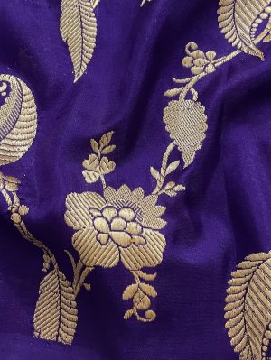 This Handwoven Purple Banaras Silk Blouse has elaborate pure zari floral brocade detailing spread all over.