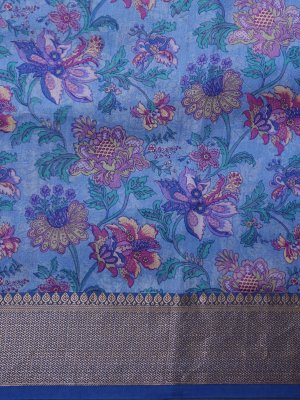This blue chaniya silk saree features a soft, lustrous finish that exudes effortless elegance. The vibrant blue body is beautifully complemented by a richly woven contrast border. Its refined design adds a perfect blend of traditional charm and modern style. Ideal for festive and special occasions.