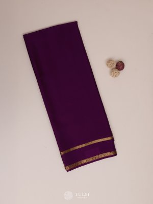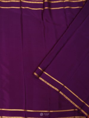 This Purple Mysore Silk Saree featuring a self-designed border and a plain body. The border is enhanced with two delicate golden zari lines, adding a subtle touch of sophistication. Perfect for festive occasions and traditional celebrations, this saree blends classic charm with understated elegance.