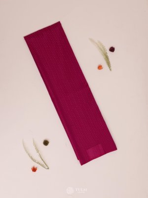 This Rani Pink Ikat Silk Blouse features a rich, vibrant green shade with subtle woven patterns that highlight the traditional Ikat style. The silky texture adds a refined shine, making it perfect for pairing with both classic and contemporary sarees.
