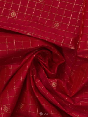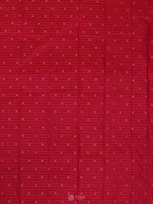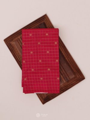 This Rani Pink Kanjeevaram Silk Blouse Material showcases fine checked patterns accented with delicate golden motifs for a lively yet graceful appeal. The rich silk texture adds a luminous finish, making it perfect to pair with both traditional and contemporary sarees.