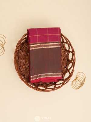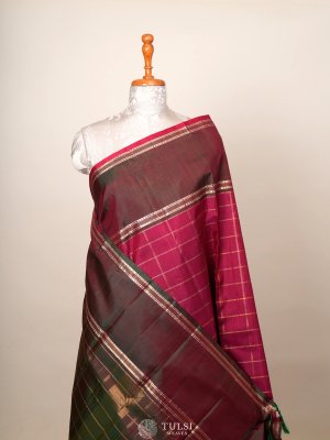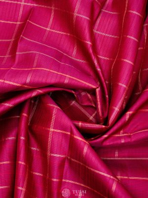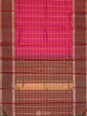 Red Checked Kanjeevaram Silk Saree with Korvai Border