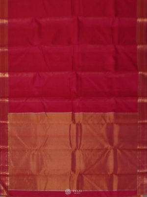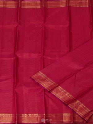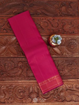 This Rani Pink Kanjeevaram Silk Saree, a refined piece woven with the intricate vaira oosi technique. The rich Rani Pink body is complemented by a lustrous gold zari border and pallu, adding a regal charm to its traditional appeal. Crafted from pure silk, this saree captures the perfect blend of sophistication and heritage.