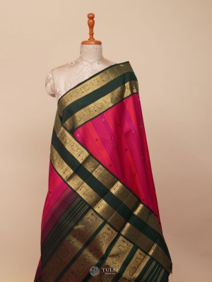 Purple Kanjeevaram Silk Saree with Rani Pink Border