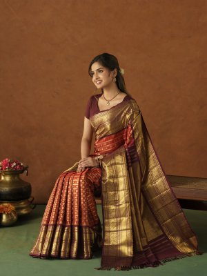 Rose Gold Brocade Kanjeevaram Silk Saree