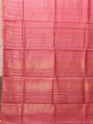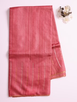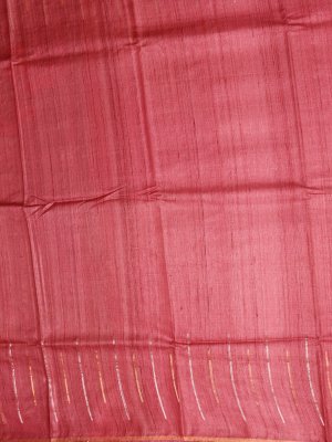 Reddish Pink Tussar Silk Saree With Embroidered Blouse