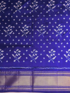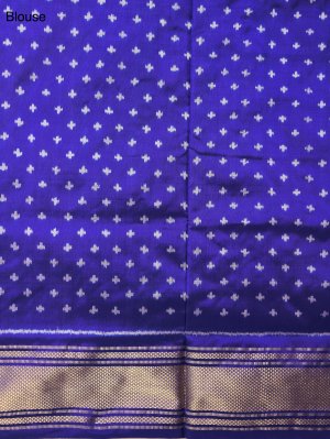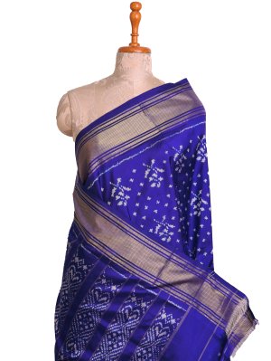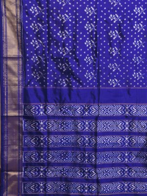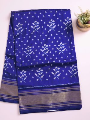 This royal blue ikat silk saree radiates a majestic allure, combining a vibrant, deep-sea hue with the rhythmic beauty of hand-loomed patterns. The high-sheen silk body is elegantly framed by a self-zari solid border, creating a seamless and sophisticated monochromatic silhouette. Striking yet refined, this ensemble offers a commanding presence that transitions effortlessly from gala events to high-profile professional gatherings.