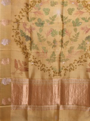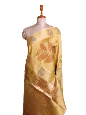 Royal Yellow Eco Print Tussar Silk Saree with Self Satin Border