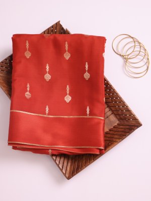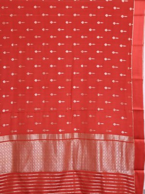 This beautiful rust orange Mysore silk saree is a celebration of heritage and elegance. The rich Rust Orange body is enhanced with intricate zari kamalam buttas that radiate festive brilliance. The border showcases delicate muthu, graceful vanki, and round butta accents along the edge. A solid-pattern zari pallu brings depth and grandeur to the overall drape.