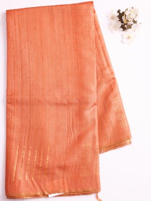 Rust Orange Tussar Silk Saree With Embroidered Blouse