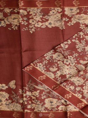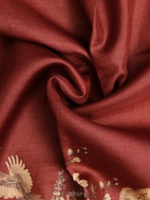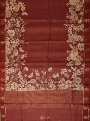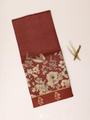 This Rust Red Tussar Silk Saree stands out with its rich, earthy tone and beautifully detailed floral prints that flow gracefully across the body. The saree is enhanced with an elegant woven border that adds a refined traditional touch without overpowering the design. The natural texture of Tussar silk gives it a soft sheen and fluid drape, making it perfect for festive gatherings, cultural events, and elegant daytime occasions.