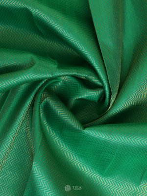 In a deep and luxurious shade of Sea Green, this Kanjeevaram silk blouse exudes regal allure with a touch of contemporary flair. Adorned with a captivating zigzag pattern in zari on the body