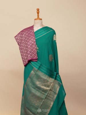 Sea Green Mysore Silk Saree With Banaras Georgette Blouse