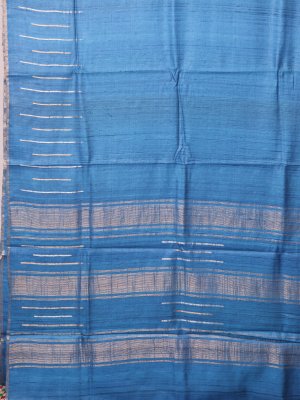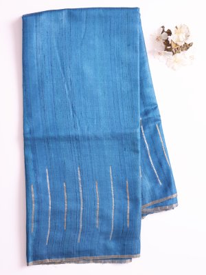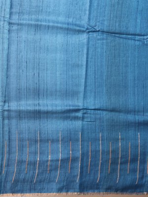 Indigo Blue Tussar Silk Saree with Kantha Embroidery