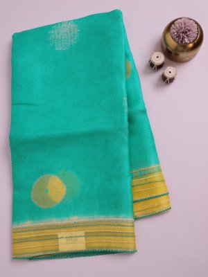 Green Crushed Organza Silk Saree