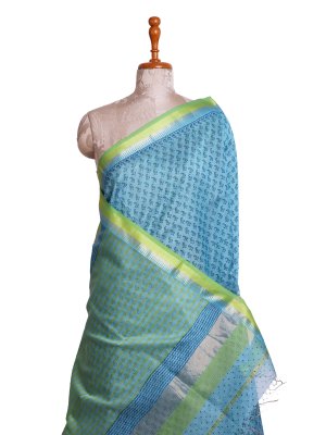 Turquoise Blue Maheshwari Cotton Saree