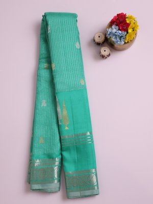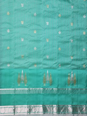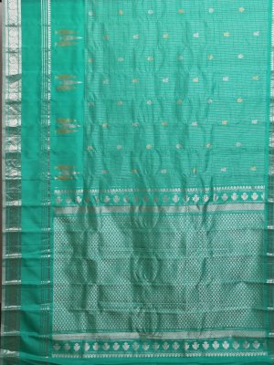 Turquoise Green Gadwal Silk Saree With Self Zari Border