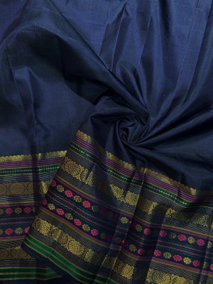 Vintage 66 - Dark Navy Blue Kanjeevaram Silk Saree With Parrot Green Double Border