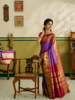 Vintage 41 - Lavender Kanjeevaram Silk Saree With Dark Purplish Blue Border