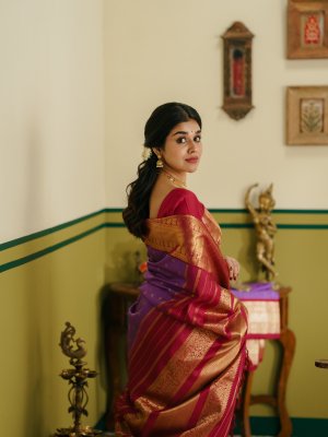 Vintage 35 - Lavender Kanjeevaram Silk Saree With Maroon Border