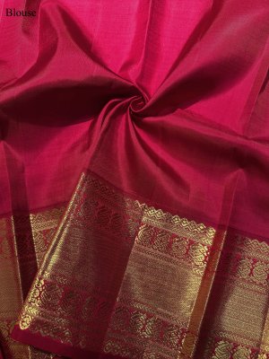 Crafted 4 - Magenta Pink Thazhampoo Temple Kanjeevaram Silk Saree With Leaf Green Border