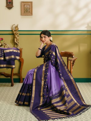 Crafted 5 - Black Kanjeevaram Silk Saree With Lilac Border