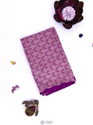 This beautiful purple Banaras blouse features intricate floral designs.The rich purple hue enhances the vibrant patterns,Embrace a blend of modern flair and classic charm with this eye-catching piece!