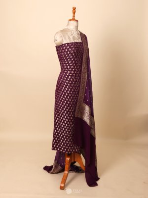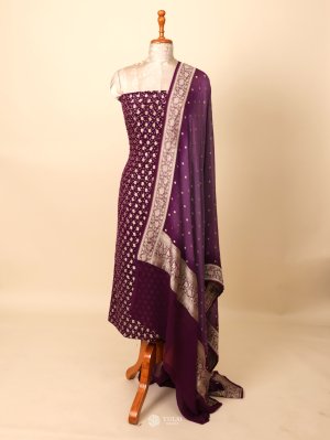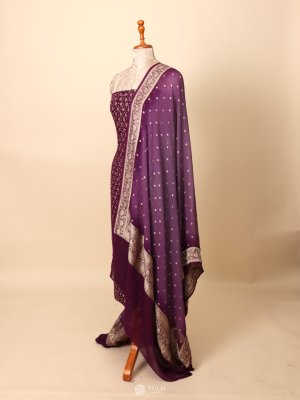 This Violet Bandhini Salwar Material features traditional bandhini patterns on a soft, elegant base. Comes with a matching dupatta for a complete ethnic look. Ideal for festive and semi-formal occasions.
