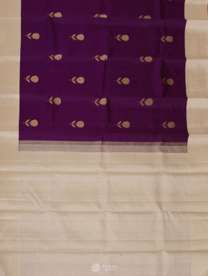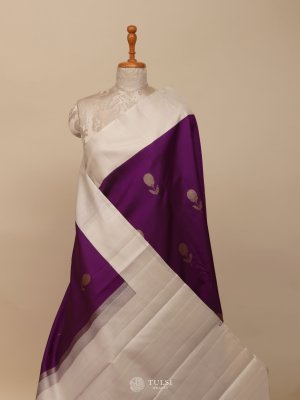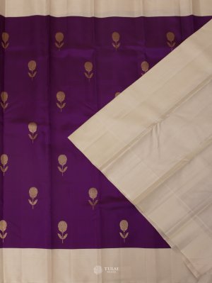 This Violet Kanjeevaram Silk Saree is a beautiful blend of tradition and softness. Woven from pure silk, it features a gentle Violet tone that adds a modern, understated charm. The classic zari border and pallu bring out its rich heritage, making it perfect for elegant occasions and special celebrations.