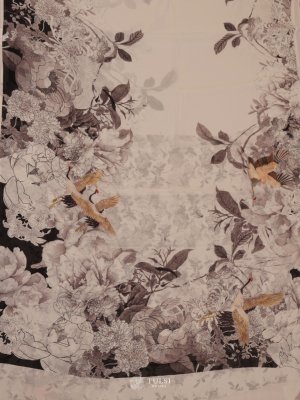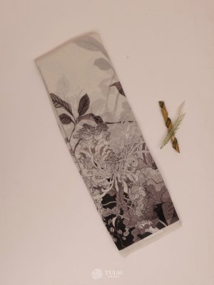 Light Grey Floral Printed Georgette Silk Saree