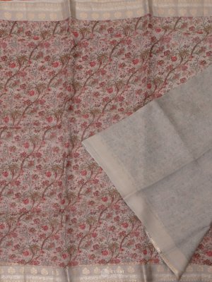 This White Floral Printed Organza Silk Saree featuring soft, airy fabric adorned with elegant floral prints. The saree is beautifully finished with a graceful zari border, adding a touch of sophistication and structure to the lightweight drape perfect for festive or semi formal occasions.