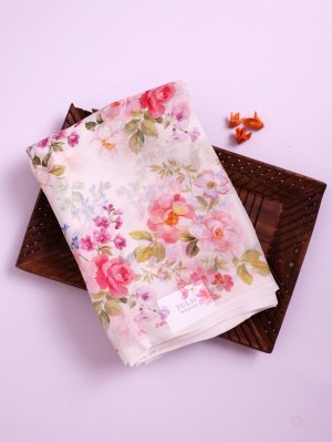 Off-White Printed Chiffon Saree