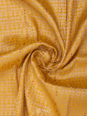 This radiant yellow banaras silk blouse showcases elegant triangular motifs that add a modern flair to its design.it provides all-day comfort while making a bold style statement.Embrace a blend of tradition and contemporary aesthetics with this eye-catching piece!