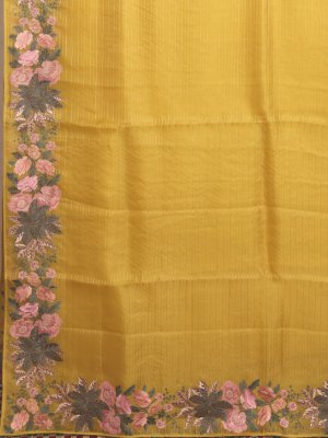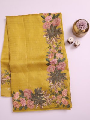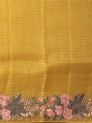 Yellow Organza Silk Saree With Embroidery Border