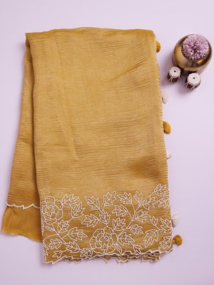 Mustard Organza Embroidery Saree