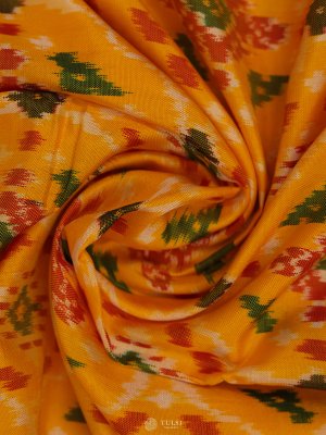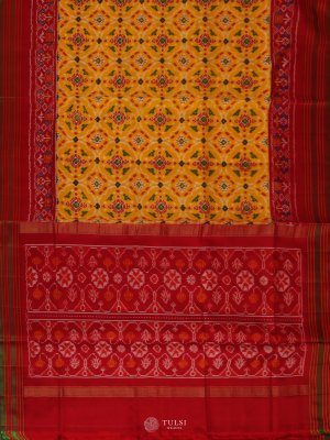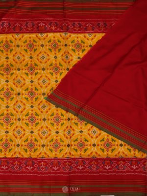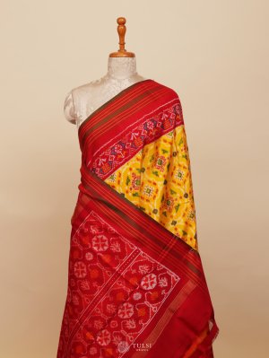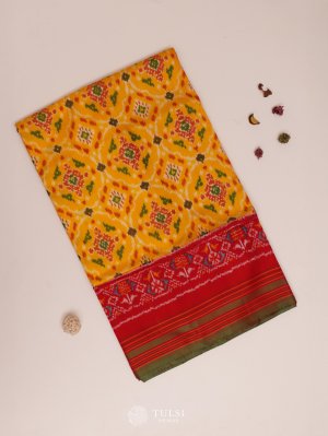 This Yellow Patola Silk Saree showcases the timeless beauty of traditional weaving with intricate geometric and floral motifs. The deep Yellow hue adds a touch of richness, while the exquisite multicolor patterns on the border and pallu highlight the skilled craftsmanship of Patola artistry.