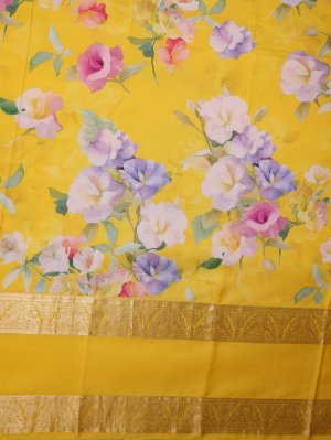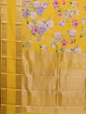 Yellow Printed Kanjeevaram Silk Saree