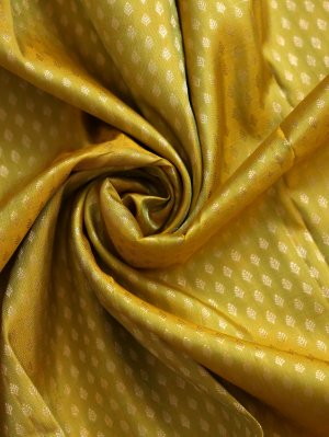 This Yellowish Green Kanjeevaram Silk Pavadai features a radiant dual-tone body accented by delicate shimmering Butta patterns that create a luminous effect. The ensemble is anchored by a striking orangish pink dual tone border, intricately woven with traditional Annapakshi motifs in fine gold zari. Accompanied by a matching dual-tone blouse fabric, this ensemble represents the pinnacle of Indian craftsmanship and graceful tradition.