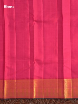Bottle Green Kanjeevaram Silk Saree With Rani Pink Border